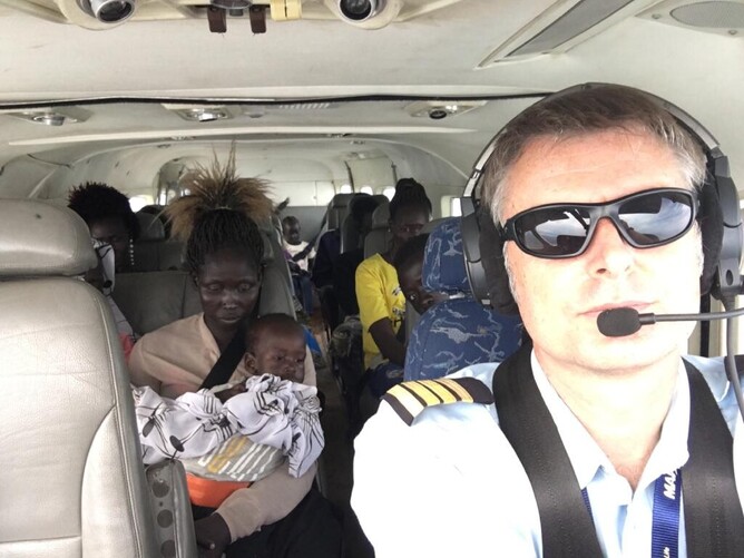 For pilot Jono, this is his second flight evacuating refugees. Even after a 12-hour day, he is motivated and grateful for the opportunity to help.